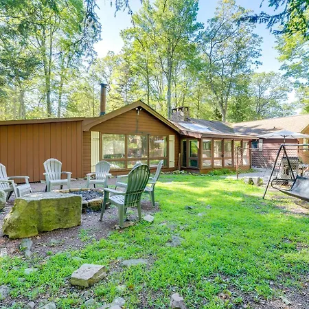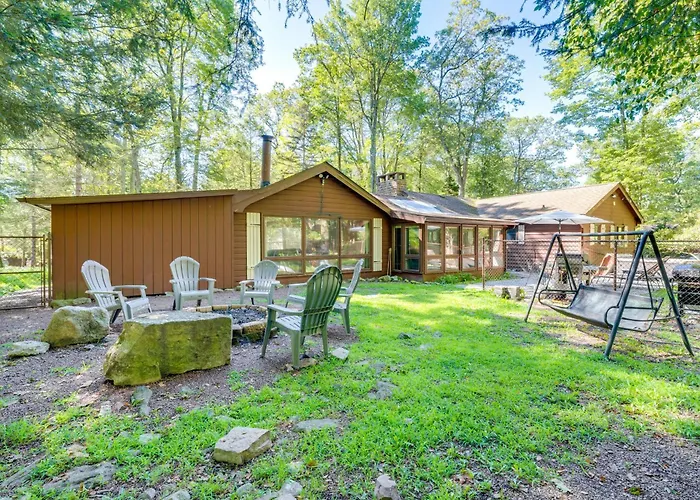 Nestled in the heart of nature, the Walk To Lake Harmony Home With Hot Tub And Fire Pit offers guests a serene escape, just 65 km from Wilkes-Barre/Scranton International Airport. This inviting retreat balances rustic charm with modern comforts, making it an ideal choice for families and couples seeking adventure or relaxation. Surrounded by picturesque landscapes, the property showcases stunning garden views that invite tranquility at every turn.